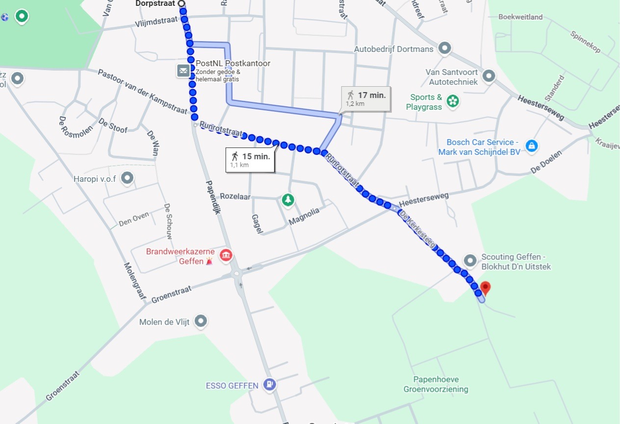 Komende vanuit Den Bosch over de parallelweg naast de A59 (u heeft op A59 afslag 51 Nuland Geffen genomen)
